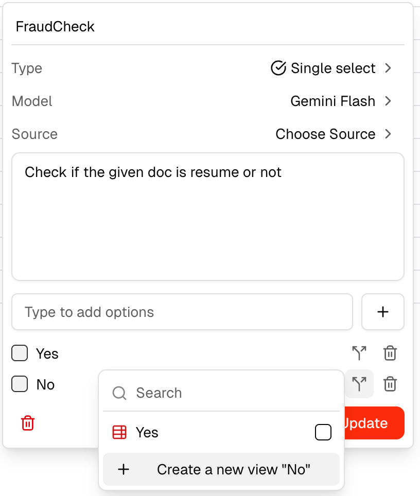 Creating a View — View creation is supported for Single Select and Multi Select field types. You can create a view from the field settings or from the bottom bar, then link it to a specific option to automatically filter assets into that view.