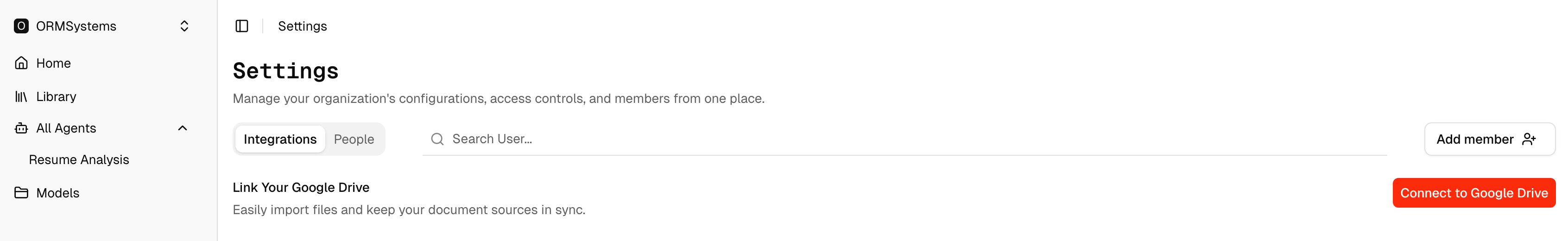 The Settings screen can also be used to add new members, manage people in the workspace, and control organization-level access.