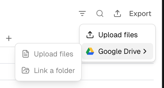 You can connect Google Drive to enable automatic file fetching from a linked folder.