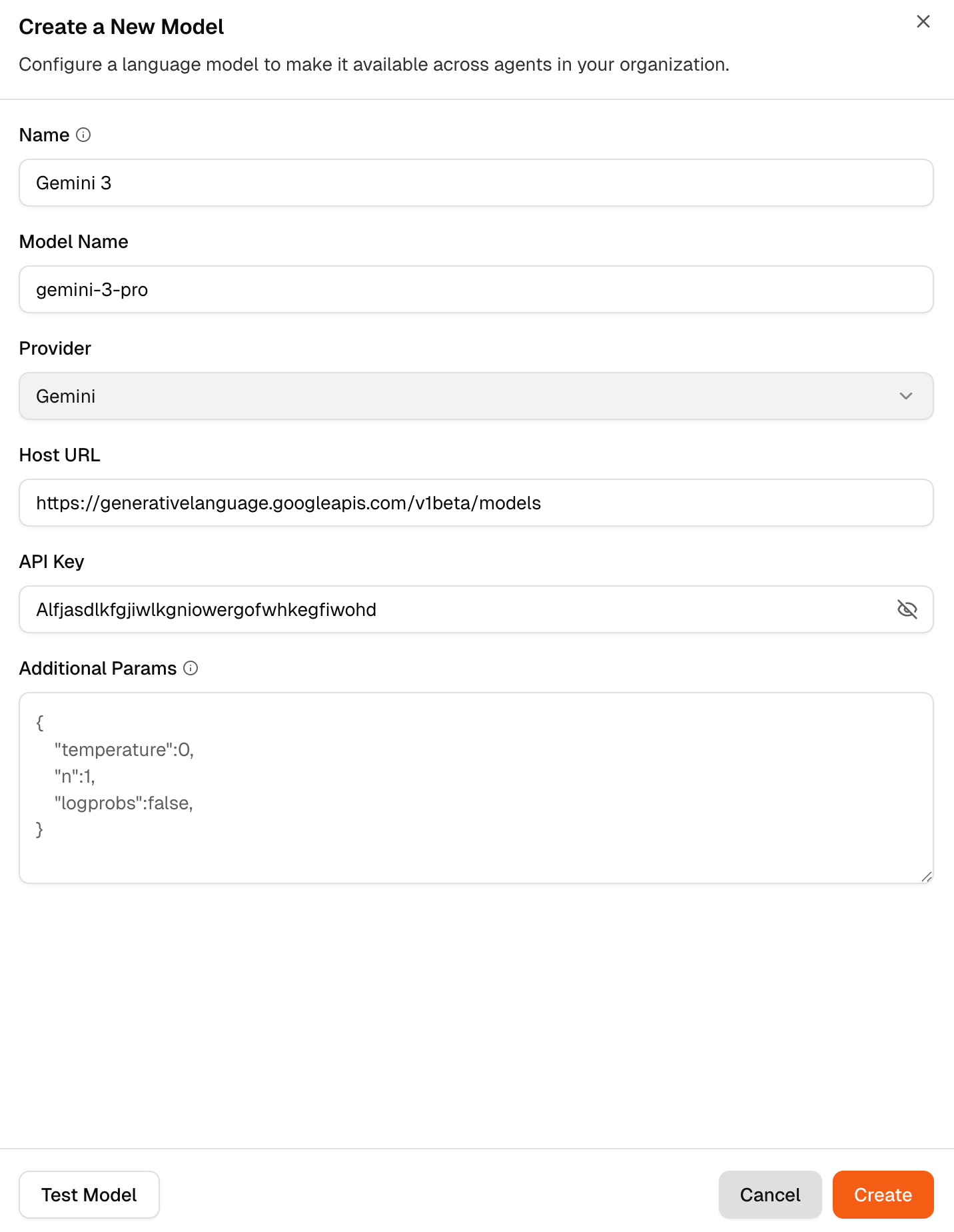 This screen is used to create and manage language models inside Forge. Models configured here become available across all agents in the workspace.